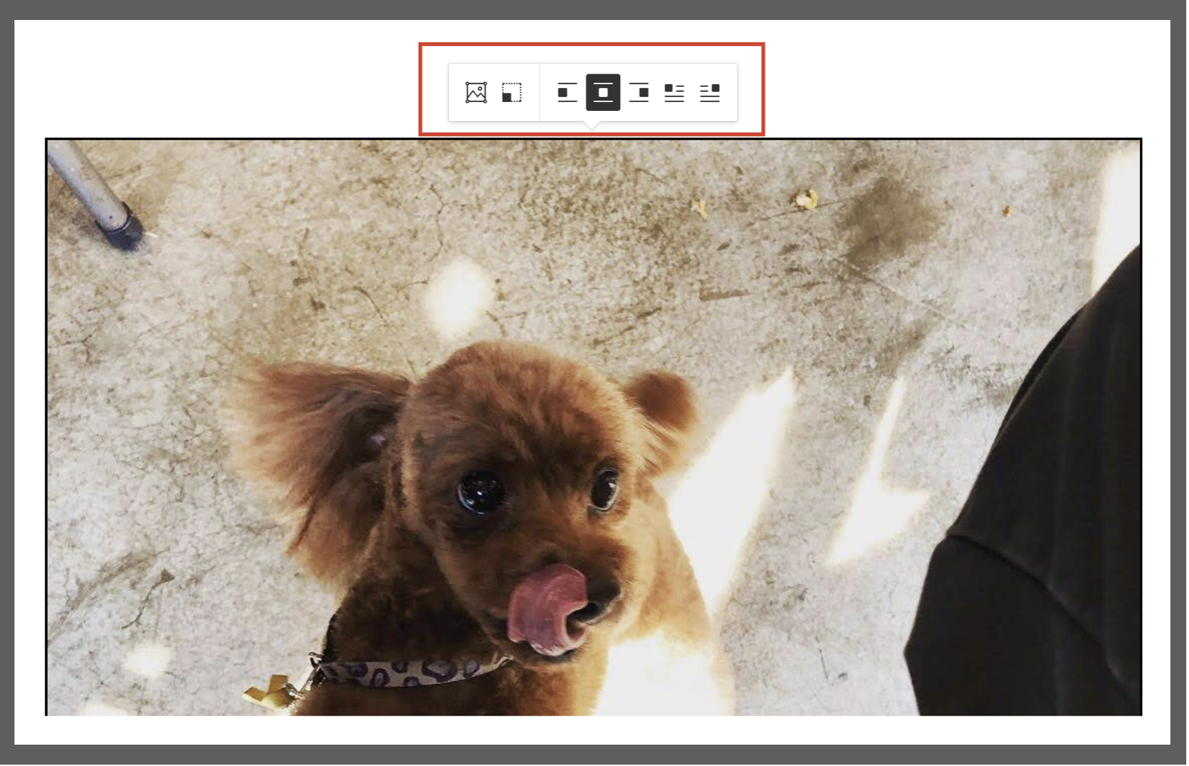 삽입한 이미지를 클릭하면 보조 메뉴가 나옵니다. 메뉴를 클릭하여 이미지를 편집하거나 크기 변경, 정렬 변경을 할 수 있습니다. 이미지에 사용 가능한 기능은 아래와 같습니다.