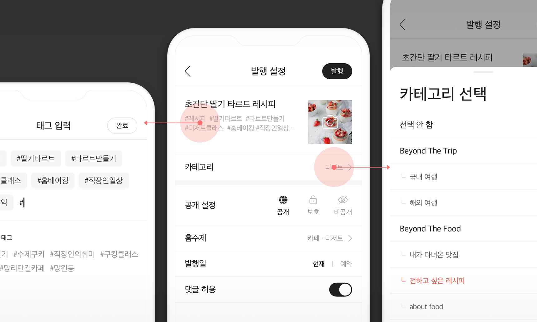작성하신 글의 태그를 입력하고, 카테고리를 선택할 수 있습니다. 글의 공개 상태, 발행 시간, 댓글 허용 여부 역시 설정이 가능합니다.