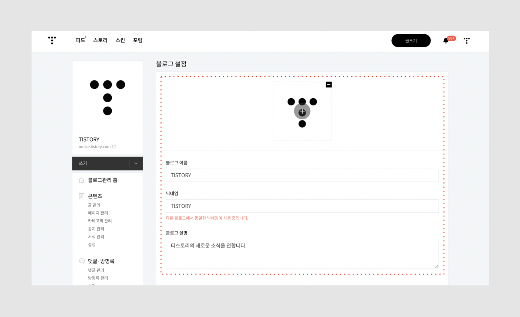 3. 블로그 이름과 소개, 프로필 이미지 등록/변경하기