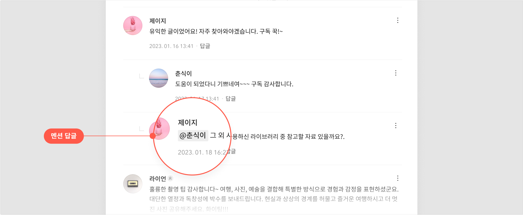 2) 멘션 답글