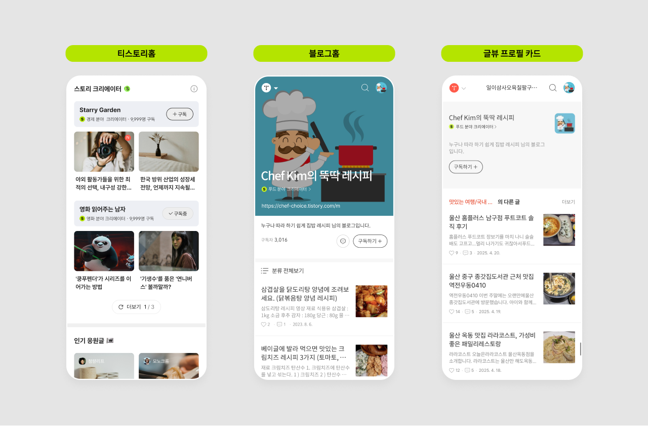 또한 티스토리홈 등을 비롯해 티스토리의 주요 지면에 소개될 기회가 많아집니다.