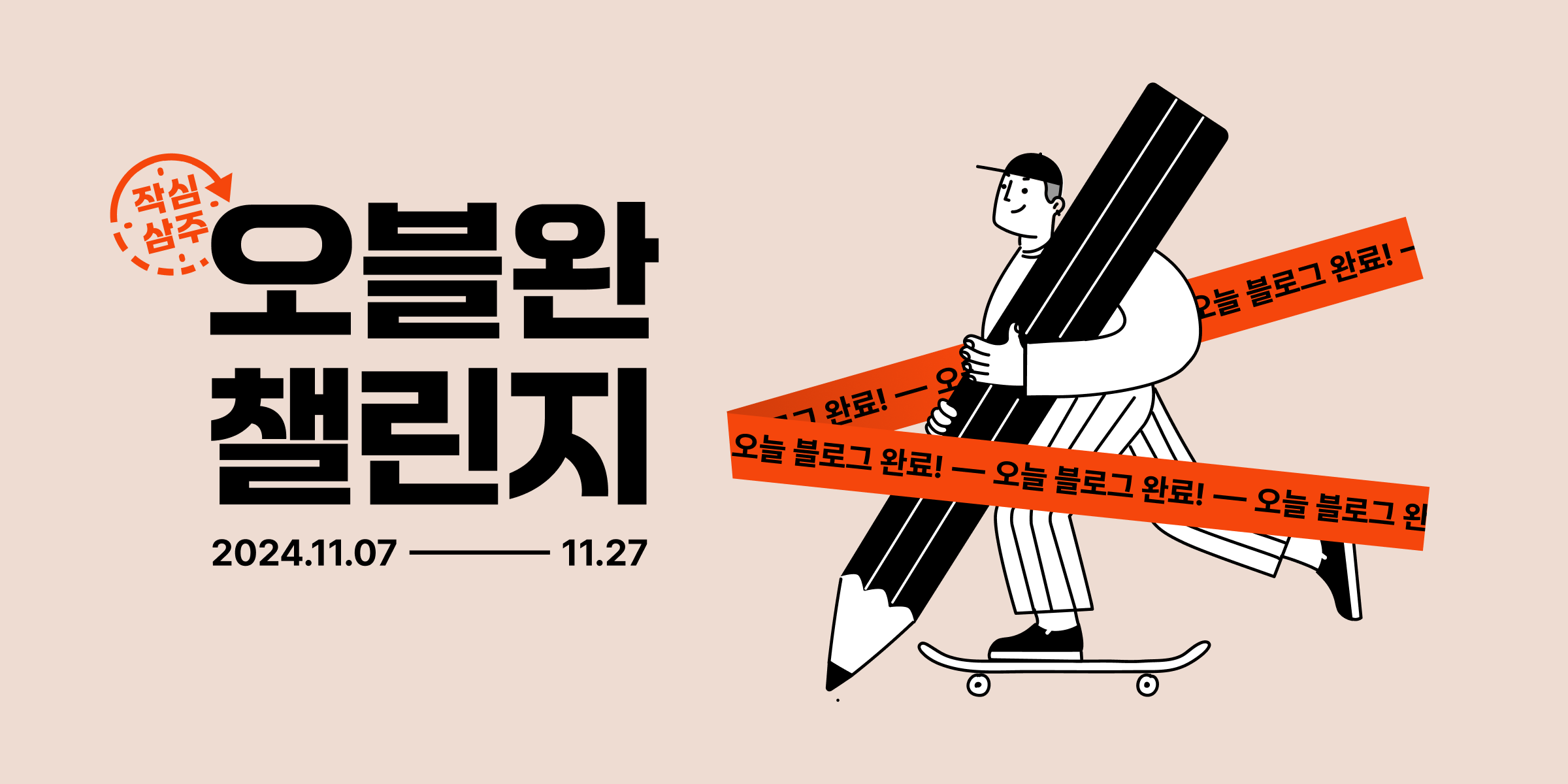 드디어 오늘! 3주간 매일 글쓰기에 도전하는 작심삼주 오블완 챌린지가 시작됩니다. 🙌🏻