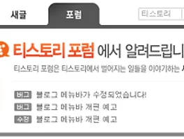 티스토리의 다양한 공간으로 쉽게 이동하실 수 있도록 링크를 제공합니다. 티스토리 홈, 베스트, 새글과 공지사항을 포함하여 이번 신규 신설되는 사용자 포럼도 쉽게 이동하실 수 있습니다. (티스토리 사용자 포럼을 통하여 더 쉽게 버그 신고 및 아이디어 제안 뿐만 아니라 티스토리에 대한 다양한 정보들을 공유해 보세요! )